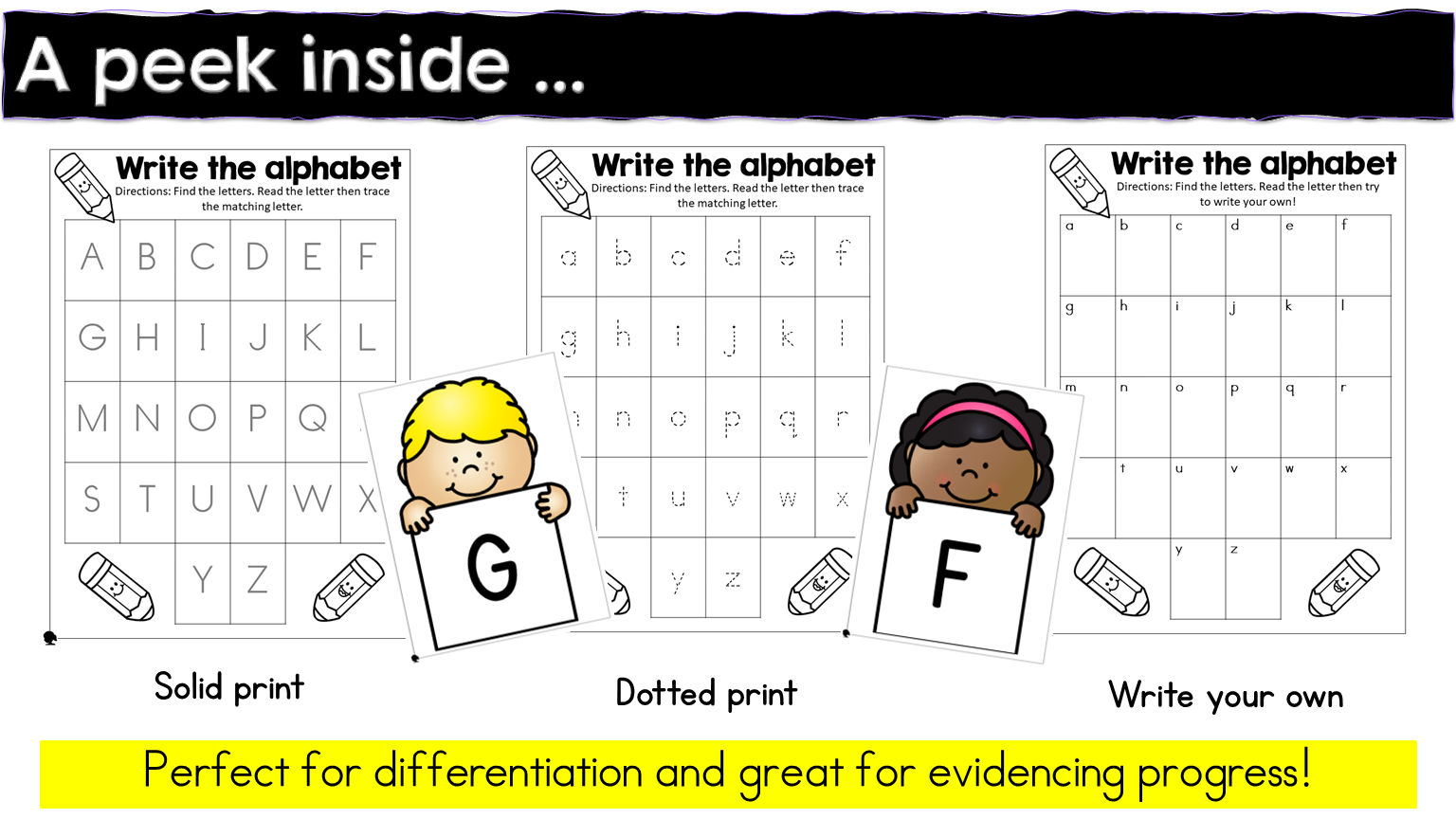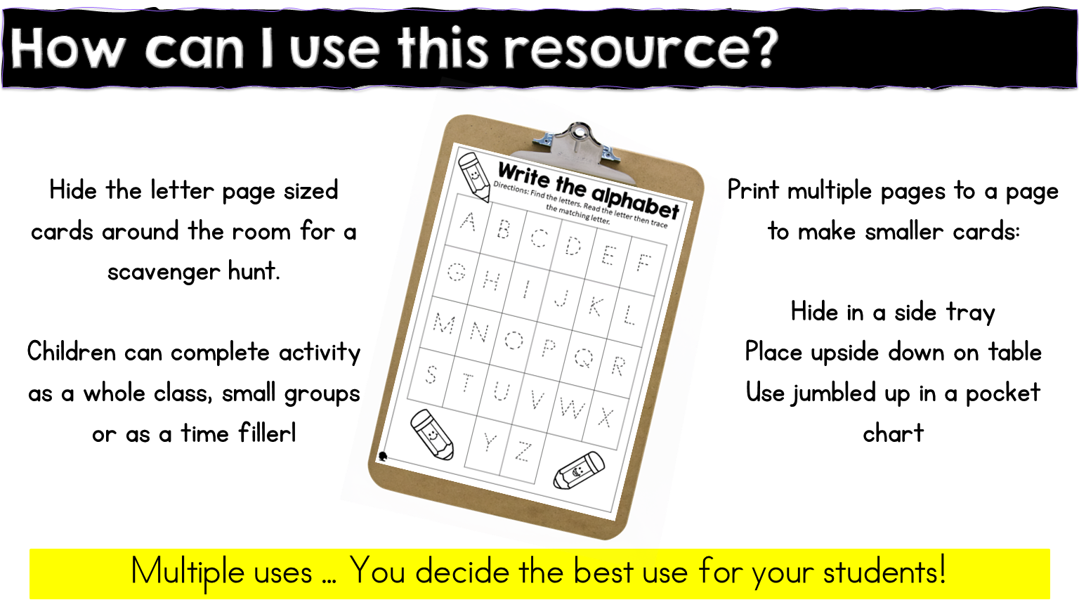 Your children have been singing the alphabet song they have started identifying the initial letter of their names. But how do you get them to read and write all the letters of the alphabet. This write the room alphabet activity is a great way to get them developing the skill of letter recognition.